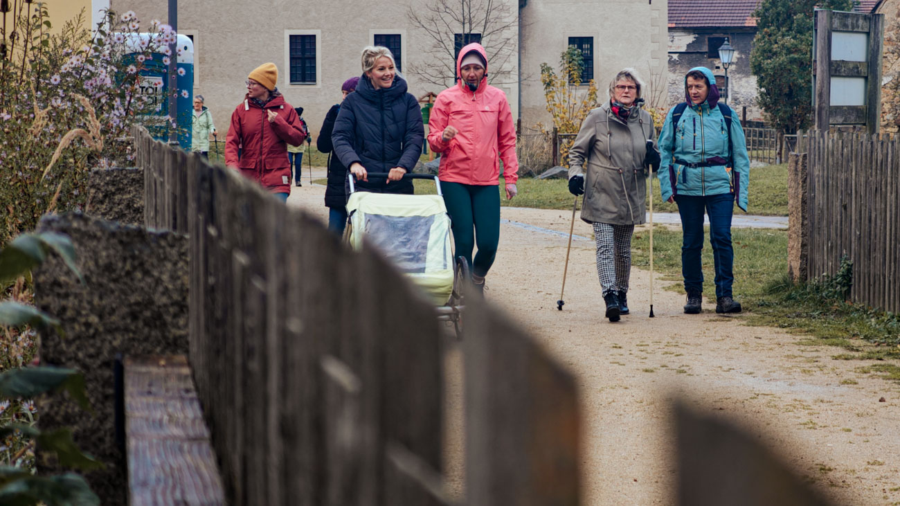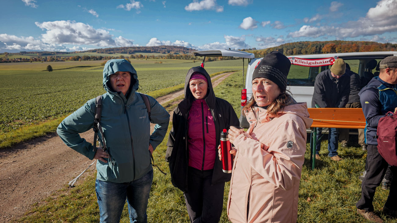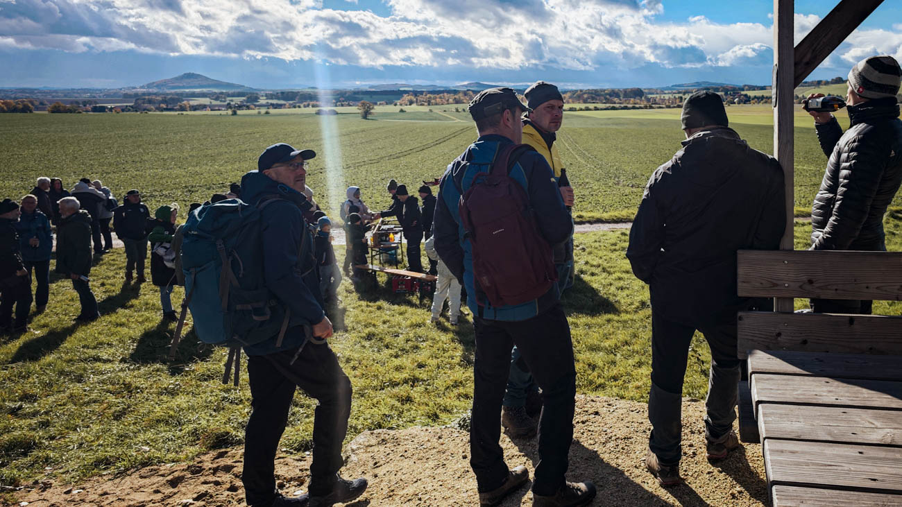 Angekommen, wartete bereits die erste Stärkung: Getränke, ein kurzer Plausch und eine kleine Pause zum Durchatmen. Danach ging es weiter über ruhige Wege entlang der Königshainer Berge, wo sich den Wanderern ein herrlicher Ausblick auf die letzte Etappe bot.
