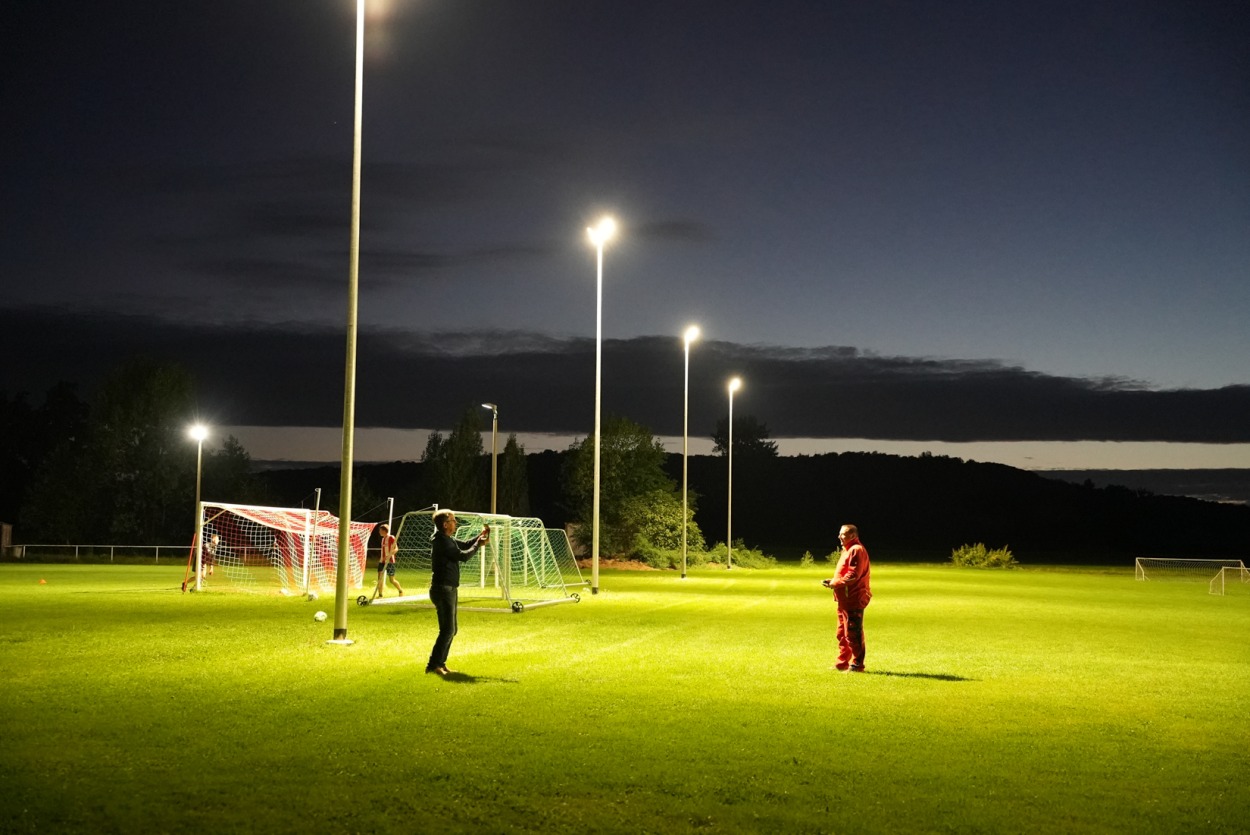 Die Modernisierung war dringend erforderlich, da die alten Flutlichtmasten nicht mehr sicher verankert waren und ein erhebliches Sicherheitsrisiko darstellten. Statt auf halbe Lösungen zu setzen, entschied sich der Verein für eine umfassende Erneuerung: neue Fundamentarbeiten, neue Masten und moderne, energieeffiziente LED-Strahler, die nicht nur für optimale Lichtverhältnisse sorgen, sondern auch im laufenden Betrieb deutlich sparsamer und nachhaltiger sind.